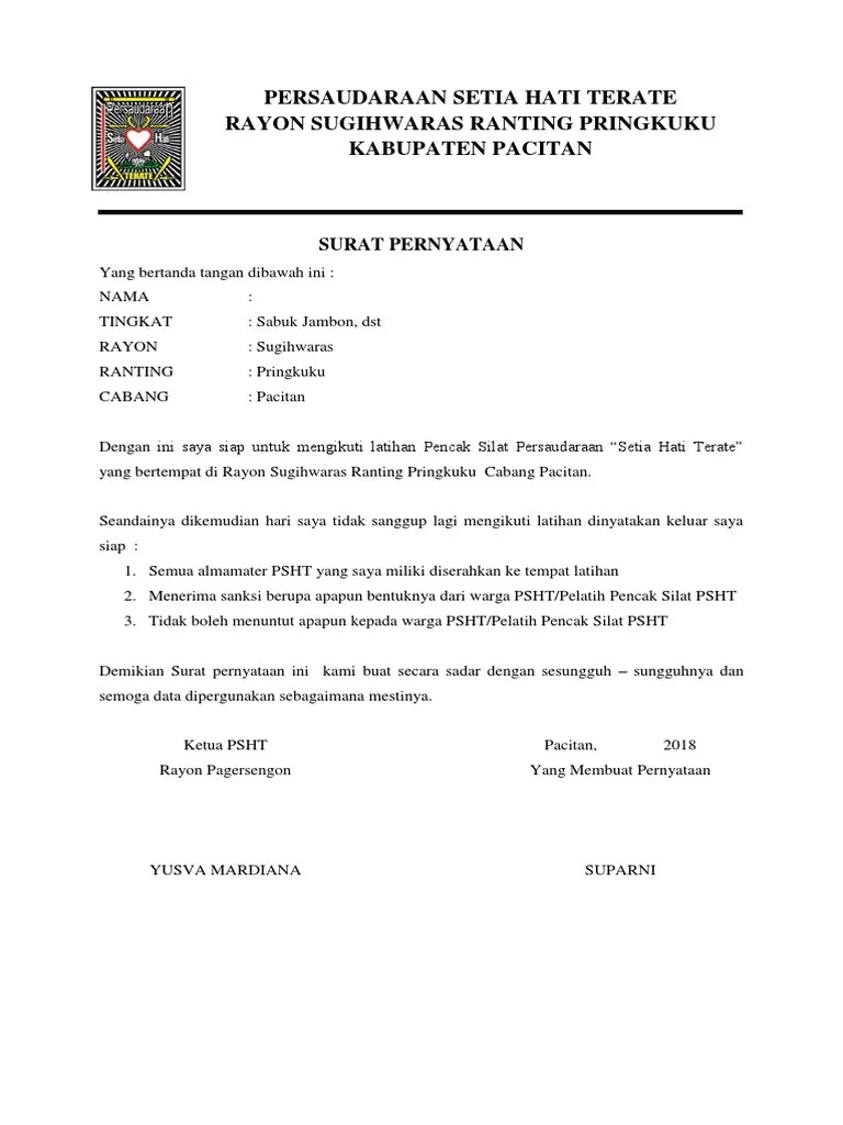 Surat Pernyataan Siswa Psht : Contoh Surat Pengunduran Diri Dari Organisasi Psht Bagi Contoh Surat / surat izin membuka latihan from id.scribd.com.